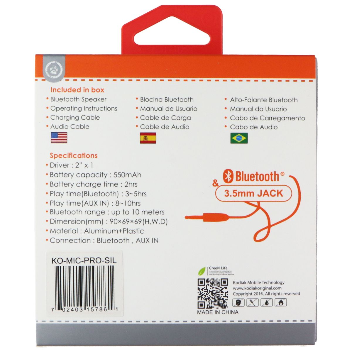 The Kodiak (5W) micPRO Portable 3.5mm and Wireless Bluetooth Music Speaker. Silver version.