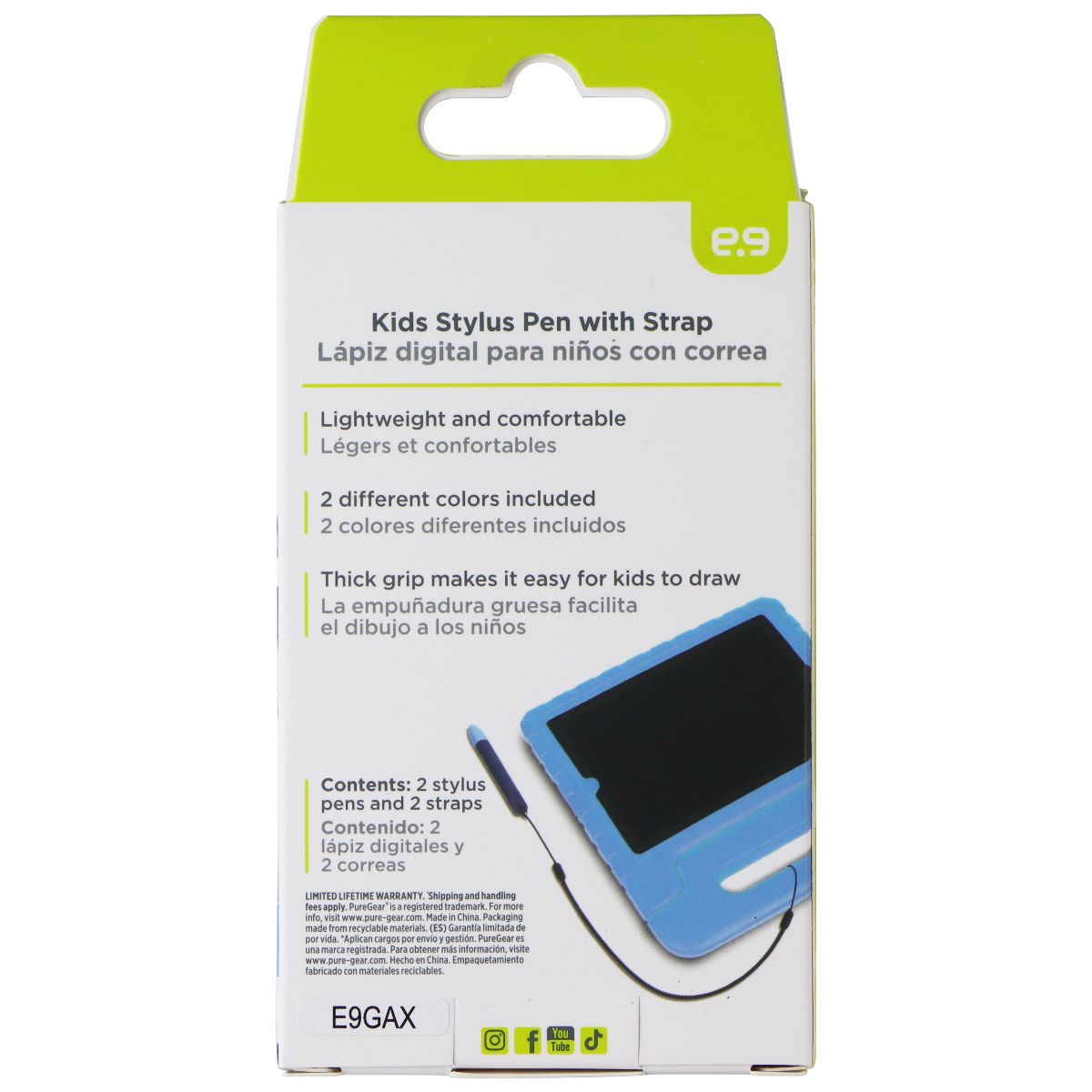 • Package Includes: 2 Kids Stylus (1 Blue & 1 Purple), and 2 Anti-Tether Straps