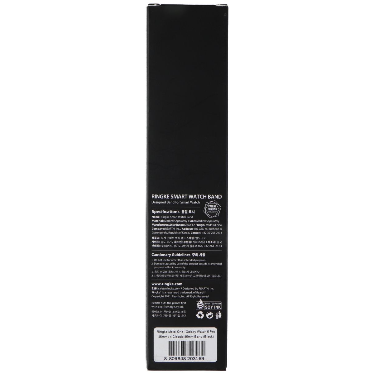The Ringke Metal One Watch Band for Samsung Galaxy Watch4 Classic 46mm & Watch5 Pro 45mm Smart Watches. Black Version.