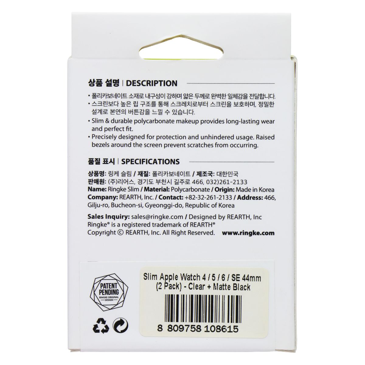 Ringke Slim Case for Apple Watch SE/6/5/4 (44mm) 2 Pack. Matte Black & Clear version.